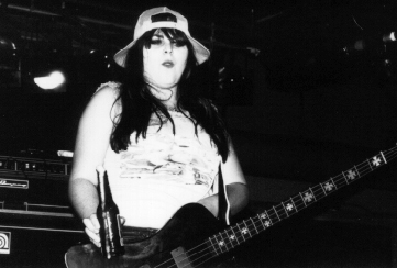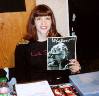 The Donnas are usually cool with photo's, but I made sure to get the ok since Sept 11 weighs so heavy on everything these days. It didn't really matter too much, but Donna R did remember to check to see if I was getting any hassle from the bouncers. When I arrived the club was pretty empty. Some of the Eyeliners and Donnas were hanging out at the merch booths waiting for things to get going. I had a quick chat with Donna R, and got Lisa from the Eyeliner's to do a Whatever "Shameless Promo" shot. The tour was going really well and everybody seemed in good spirits. The Donnas seemed to really dig the bill for this tour, and they said shows were pretty packed. The Kicks started the evening off. I'd never heard of them but I figured if they were good enough to tour with the Donnas then they must be pretty good. They played power pop with some punk edges, and were actually really good. There weren't too many people at the club when they started, but they were able to get everybody's attention with some really well done songs. Somewhere on this page there is a photo of the Donnas hanging out in the crowd watching the Kicks. If it was worth their time, it's worth yours. The Eyeliners were up next. The Eyeliners are a three piece all female punk band of sisters. Gel their guitar player really rocks the shit during their set. She plays behind her back on the amp, all over the place. They have a brand new CD, "Sealed with a Kiss" out on Panic Button. Check it out. Their set was great. The Donnas set was really great. I'll admit that I am biased but it makes my week, if not month seeing them play. The Donna's are still touring behind "Turn 21," and they should be recording again soon. Their set was a good mix of their 'old' stuff and the Turn 21 stuff. They did "Are You Gonna Move it for Me," "Do You Wanna Hit It," "Get You Alone," "Rock and Roll Machine," "You've Got a Crush on Me," " Hyperactive," "Checkin' it Out," "Play My Game," "Midnight Snack," "Didn't Like You Anyway," "Get Rid of That Girl," "Doing' Donuts," "Huff all Night," "Skintight," "40 Boys in 40 Nights," and "Lets Go Mano." All in all it was a really good show. It was nice that it wasn't too packed, but I would have liked to seen more Providence folks showing up for the Donnas. A few days after this show the Donnas were in a car accident on their way to a photo shoot for some kind of memorial book for September 11. They were in a limo that got hit by somebody else I guess. Allison needed stitches and Mya hurt her back or neck. They dropped the last bunch of dates from the tour, but they'll be recording and touring again soon. Send them well wishes if you want, and keep an eye out for the Eyeliners and the Kicks.