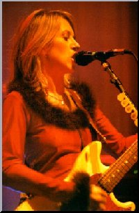 Before long the band took the stage. Liz is travelling with a 5-piece band of unnamed people- drums, guitar, bass, keyboard, and backup singer. They played the first few bars of "Explain it To Me," before Liz stepped out from the shadows and began the night. A roar went up from the crowd when she came on, but everybody piped down quick to hear. The Phair one looked pretty swell in a long black skirt and red top, but only about ¼ of the guys were actually there to ogle the upper middle-class singer babe. All the fuss about her stage fright also seemed to be much to do about nothing- right after "Explain it to Me," she yelled out a quick 'Hello Boston' then went right into "6"1'." |